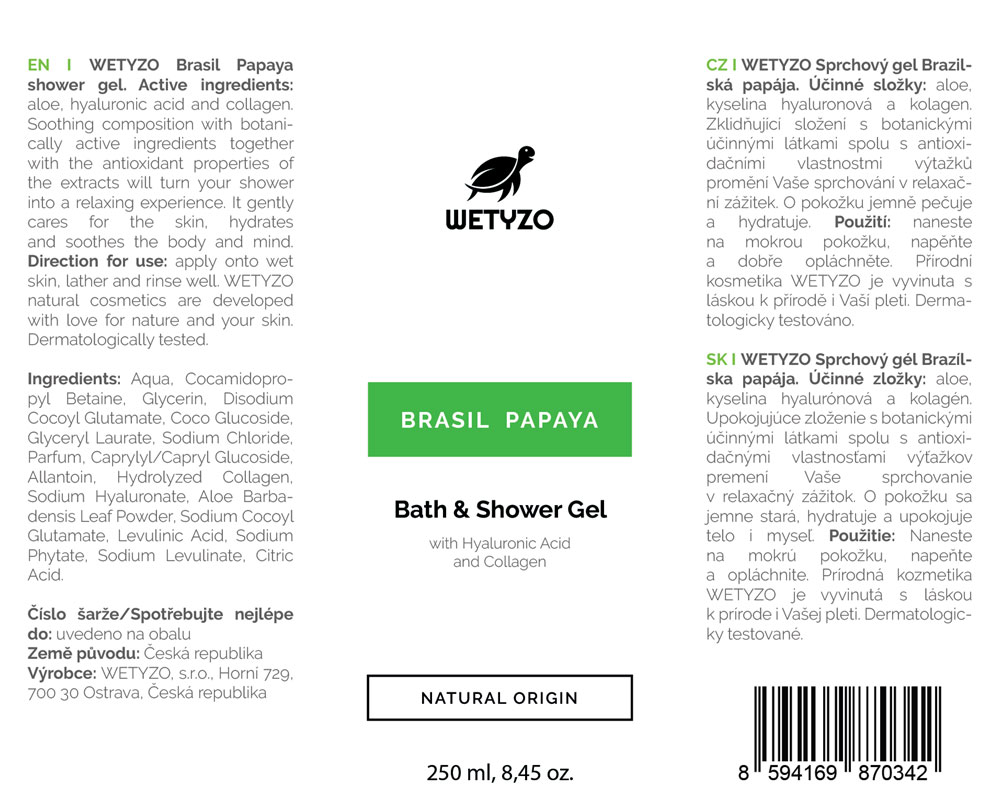 Sprchový gel brazilská papaya s kyselinou hyaluronovou a kolagenem